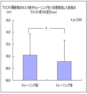 It is rather difficult to exercise a specific body area exclusively such as waist and pelvis. Exercise was performed on the pelvic and lumbar vertebrae areas for 15 minutes everyday for 17 days.