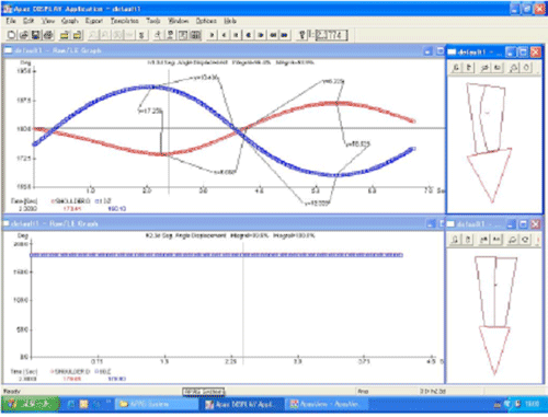 The graph above (HUSLA) shows the change shoulder (Blue) and pelvis (Red) lines in opposite directions. The relative difference between the blue and red line is caused by side inclination of the spine.